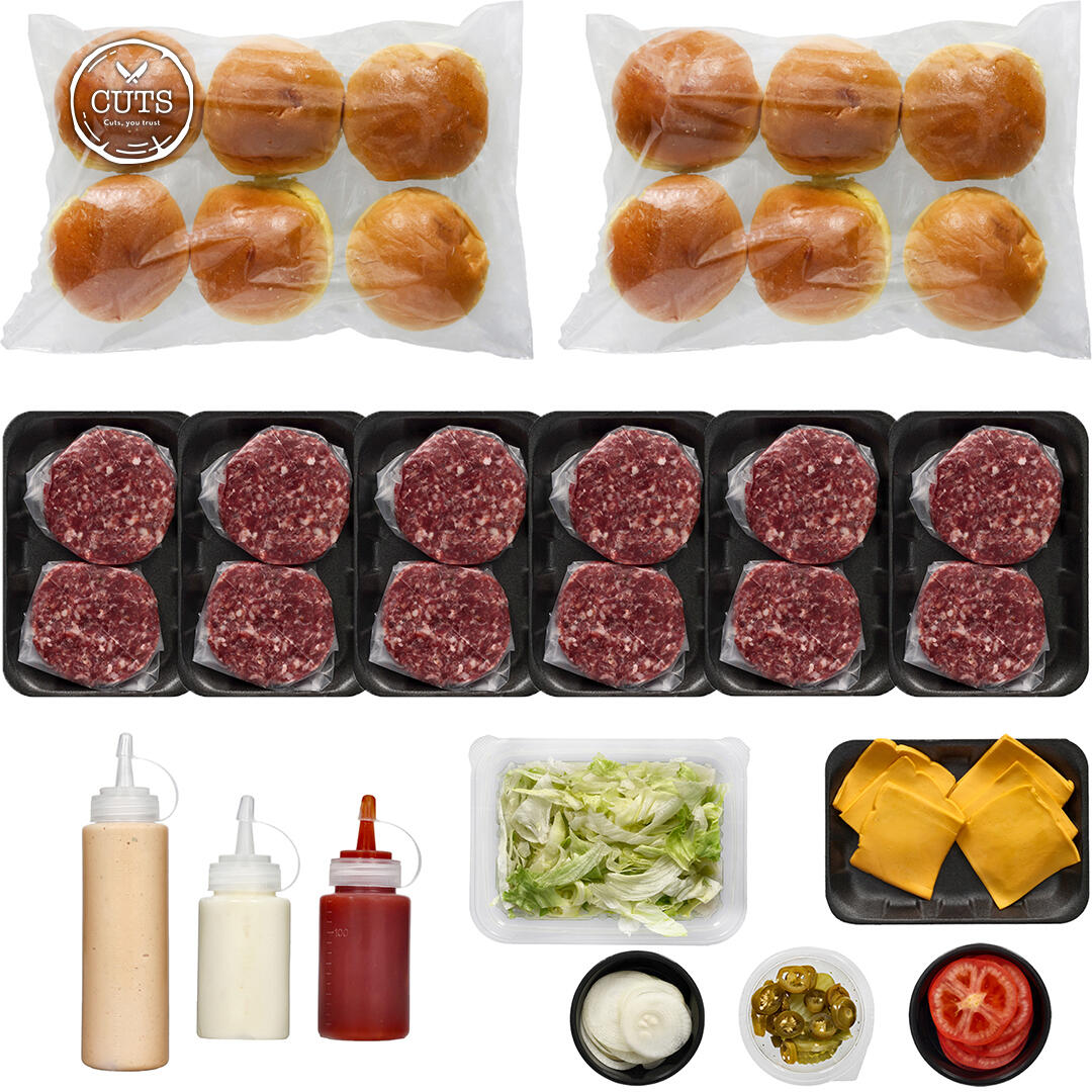 HomeKuwaiti Beef Burger Box Kuwaiti Beef Burger Box DescriptionIts Contain: Kuwaiti Beef Burger 12 Pcs Cheddar Cheese Slice - YellowBurger Buns 12 Pcs Burger Sauce Lettuce Ice bergWhite OnionCucumber & Jalapeno Pickle Tomato MoyainaiseKetchup